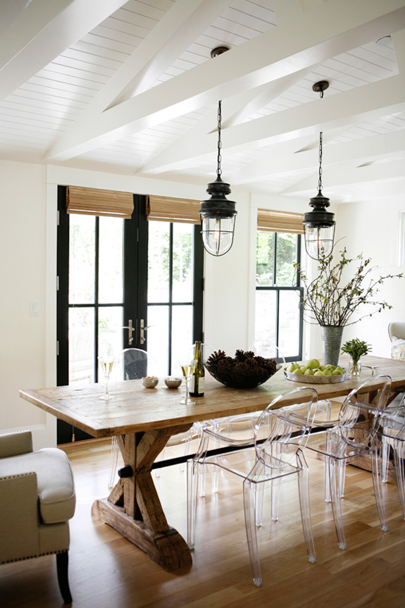 My favourite kind of farmhouse is one with a modern twist. This farmhouse in Washington is just that, with a colour palette mostly of black and white, this home is comfortable and casual, with modern and rustic melding together in blissful harmony. My love for a traditional farmhouse table paired with Starck’s Louis Ghost chair (or Panton S chairs) has never wavered. Kudos to H2 Design + Build for killin’ this project. (Photos: Dorothée Brand)