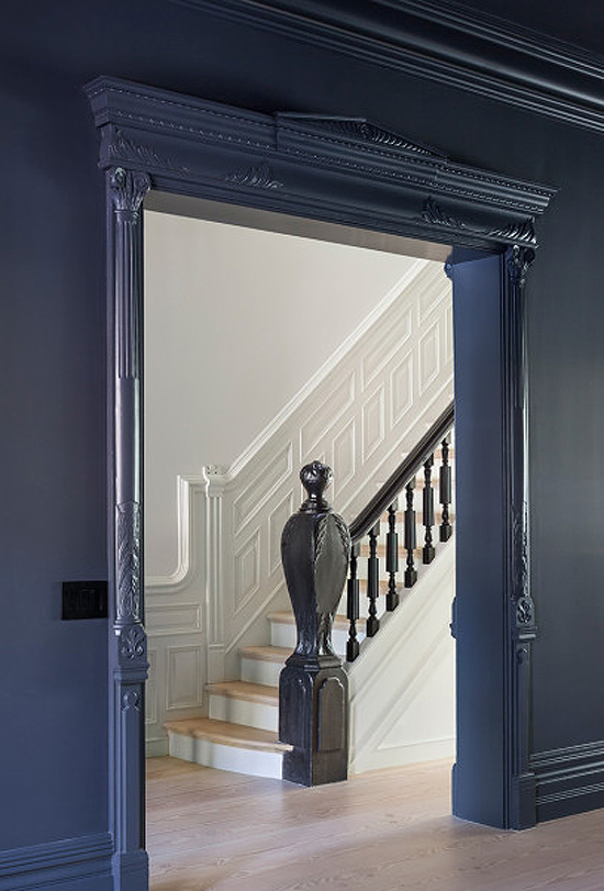 Seriously gorgeous! That kitchen!…That's your blue/black Kim 🙂 Love that mouldings around the door way…, such a contrast to the rest of the room.