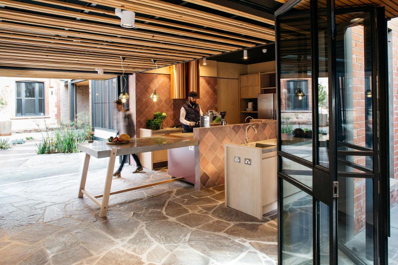 The workplace today needs community, connection and inclusion. Base 64 is set up as a community of cohabitating businesses under the umbrella of former Internode chief Simon Hackett. Seen as a technology incubator, it eschews the short term excesses of a Silicon Valley “fun park” office for an emphasis on belonging, integration with the outdoors, rich, lush, tactile materials and a sense of comfort and well being. All this is underpinned by a strict environmental responsibility and adaptive re-use.