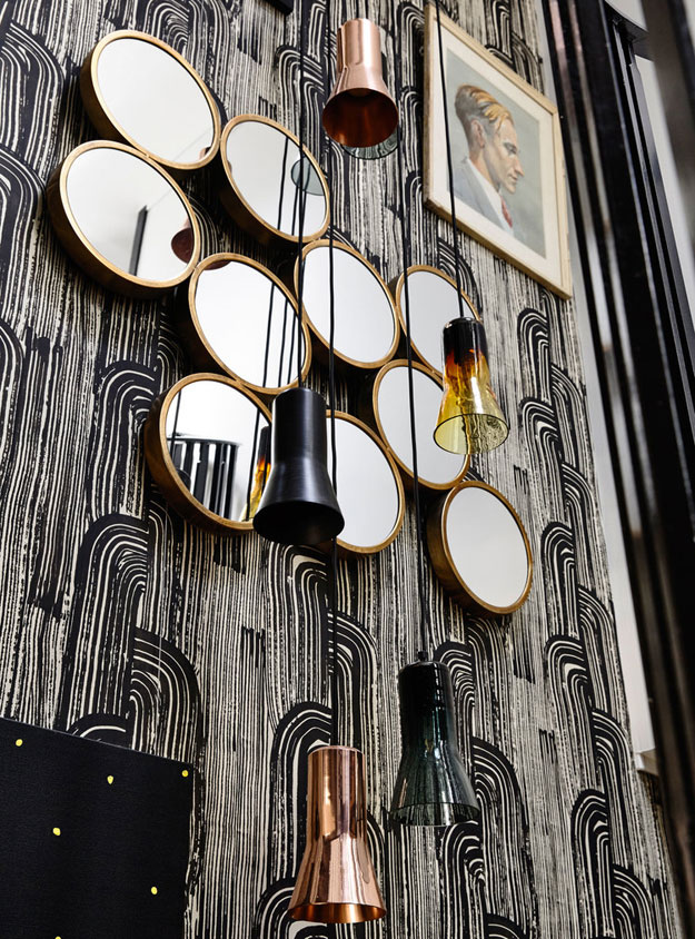 The homeowner built most of the small tables around the house, including the one above. His father is a metal worker who taught and helped him build the bases. I looove this coffee table.