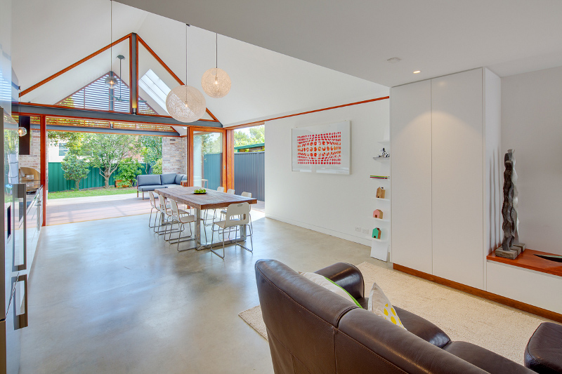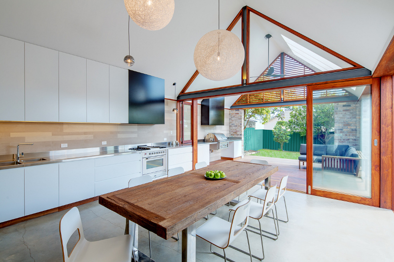 I really think that the national pastime of Australians is renovating and the the holy grail is the house extension. We all have dreams of taking a small, pokey period property and blowing out the back to create an open plan inside/outside family relaxation and entertaining space that doubles our floor space and exponentially explodes our enjoyment of home life. Like this fab reno and extension of a Kensington, Sydney house by Angus Mackenzie Architect.