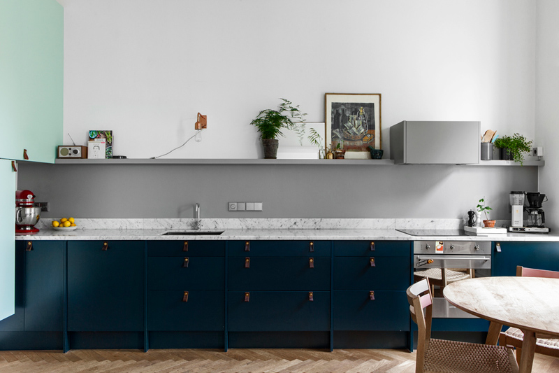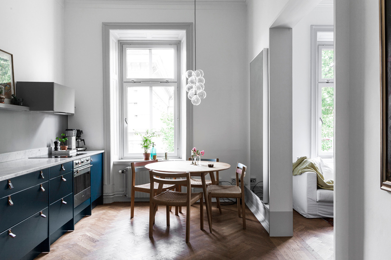 What a gorgeous colour scheme! Add in a marble countertop and funky hardware and it is a winner (I hope the new owners change out the stainless steel faucet for a brass one). Via Entrance Fastighetsmäkleri.