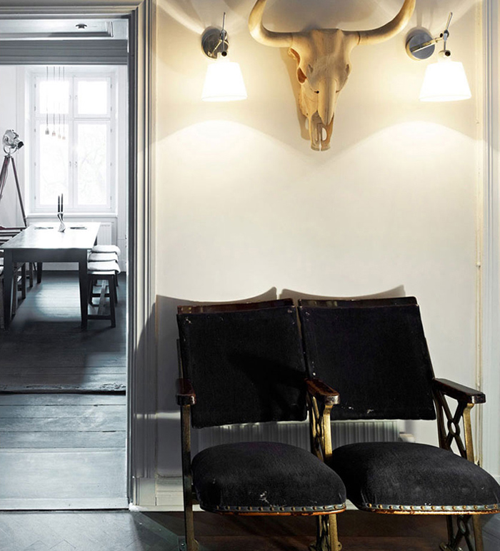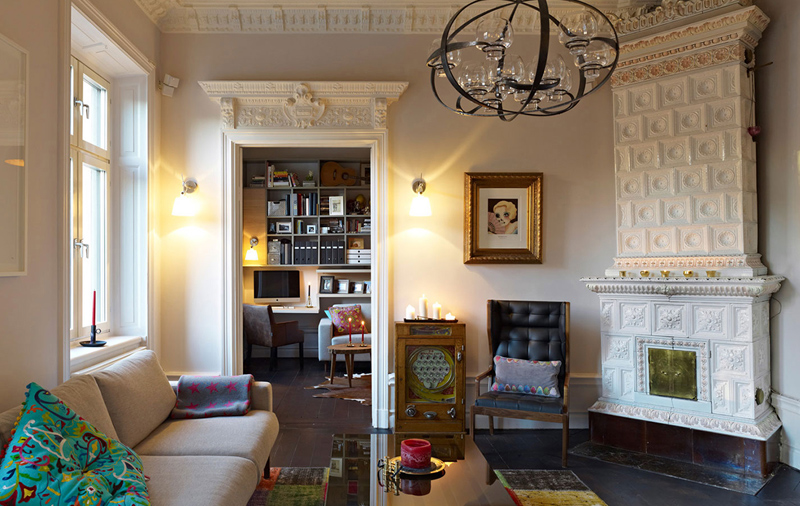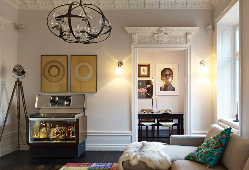 I have much love for the eccentricity of London design agency Minale + Mann. This project is another favourite of mine. M+M was commissioned to refurbish this dilapidated 18th century apartment in the centre of Stockholm’s Sodermalm district. The apartment was restored to its former glory, with tiled Swedish fireplaces and stunning original oil painted ceilings. Furniture was custom fitted, and the kitchen and bathrooms were finished in Swedish sand ash to enhance our eclectic mix of antiques and artwork. A 70s jukebox was even converted into a whisky bar! (Previous M+M features here and here)