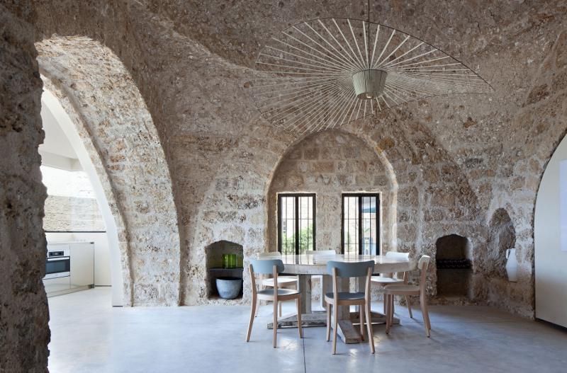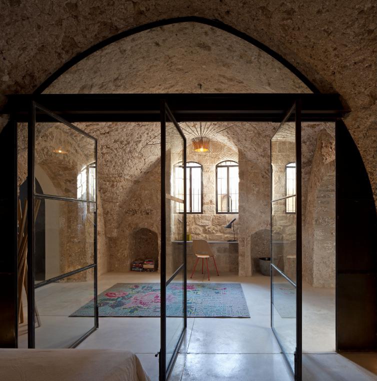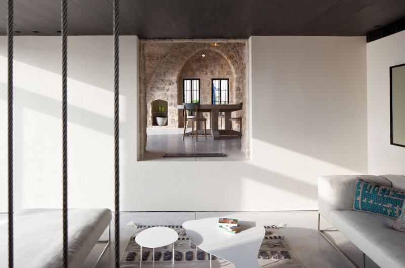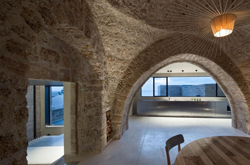The building in the old quarter of the port city of Jaffa, Israel is hundreds of years old but the living spaces are modern and minimalist. Much of the character had been removed by previous owners so architect Pitsou Kedem striped the walls and ceilings back to the beautiful, ancient stone before combining old with new. All with the spartan aesthetic common to the simple stone dwelling and the now minimalist modern interiors.