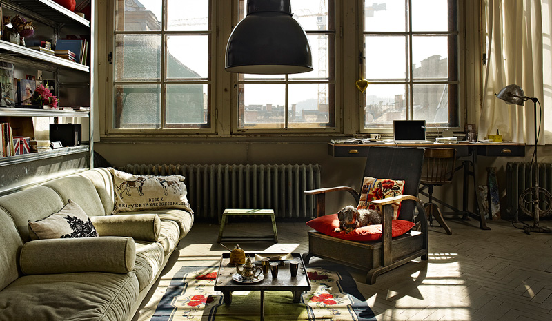 That photo above is a dream – an empty, raw loft space to convert into living quarters. Attila F.Kovács and Zsuzsa Megyesi are the architect/interior designer duo of A+Z Design Studio (I believe they’re based in Budapest) that transformed this space into a rustic, cozy home filled with well-worn vintage touches and industrial lighting, as seen below. Those windows alone would have sold me.