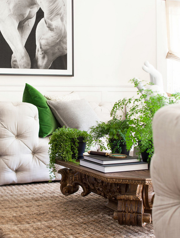 I wanted to share one more small project by the talented ladies of Studio Revolution. This one may have been a bit of a challenge with one homeowner loving anything french and the other loving their backyard. In the end they brought together lots of greenery against a neutral palette of jute, hides, leather, linens and cashmere with a definite French feel (with a bit of help from Restoration Hardware – I have always had a thing for their Soho Tufted collection).