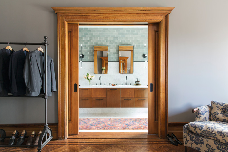 We have featured quite a few projects by Elizabeth Roberts Design (and Ensemble Architecture) on the blog and this one may be my all-time favourite. This 5 story 5200 sq ft residence had been owned by the same family for a century! This is one home where I can say without any doubt whatsoever that NO ONE SHOULD EVER PAINT OUT THE WOODWORK. EVER. (Renovations by MADE Architecture, finishes and furnishings by Elizabeth Roberts Design)
