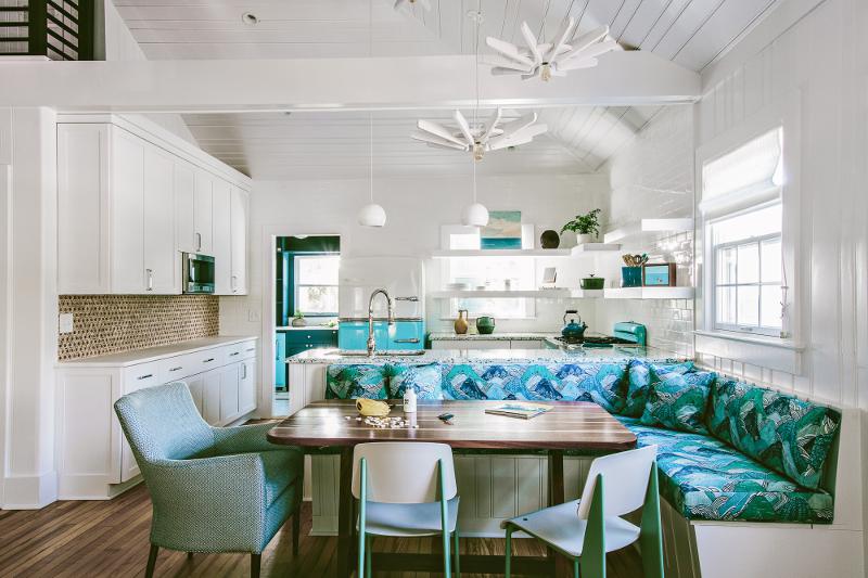I had to share one more wonderful home from Charleston-based interior designer Cortney Bishop. A bright and colourful family home at the beach. Blues and seagreens with beadboard and polished floors. A hint of retro and a touch of tropical. It’s all about kicking off your shoes, collapsing in a chair and knowing you’re home.
