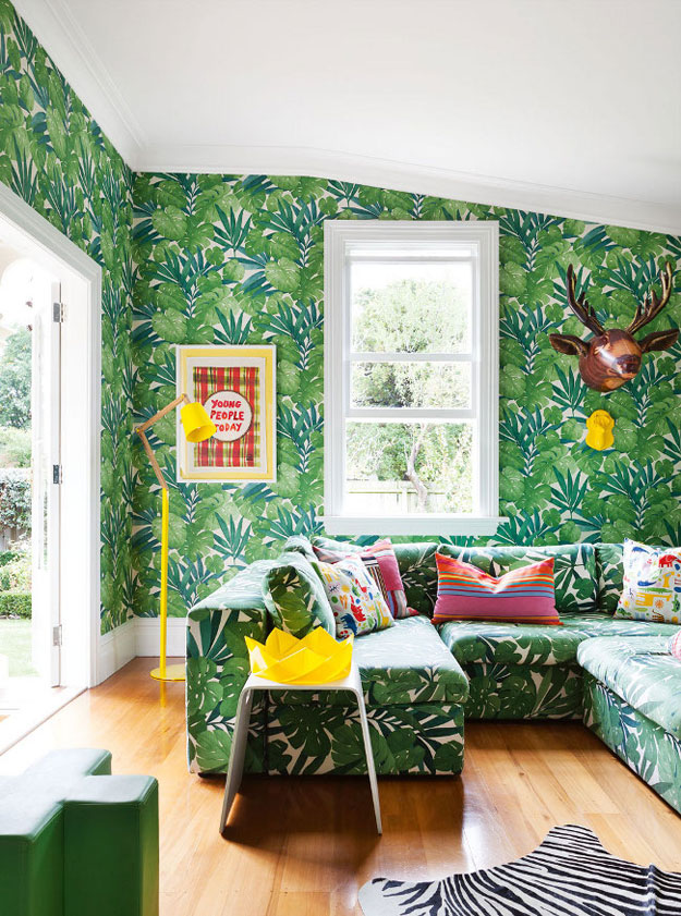 Yesterday I shared a round-up of photos featuring plants as decor. I understand that some people don’t have a green thumb and plants aren’t really their thing….so how about plant wallpaper? Bringing the outdoors in but keeping it inanimate. Because you can’t kill wallpaper!