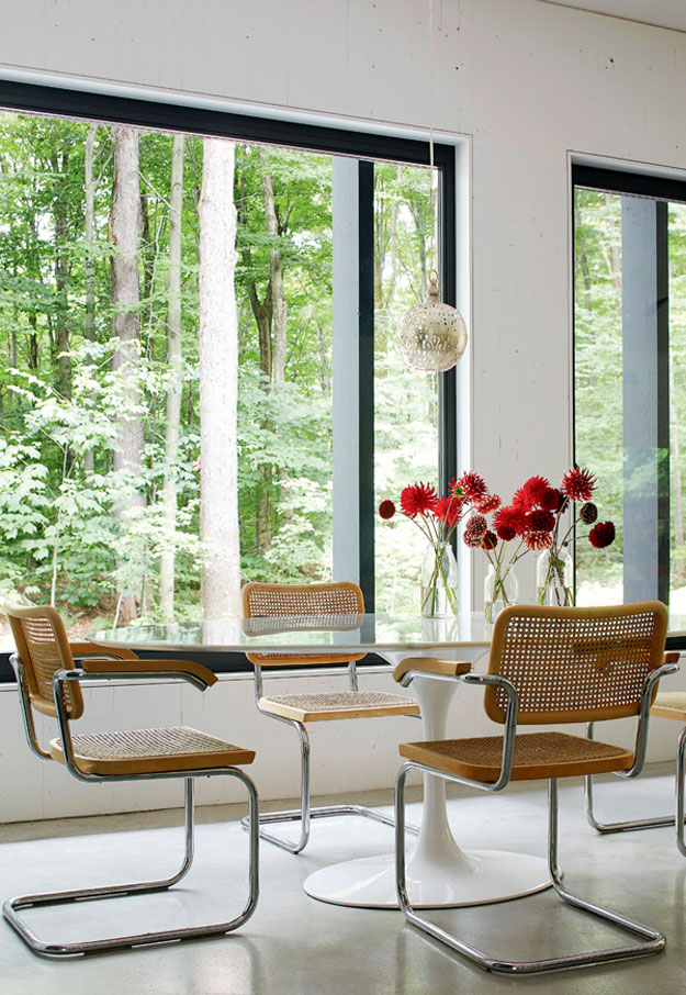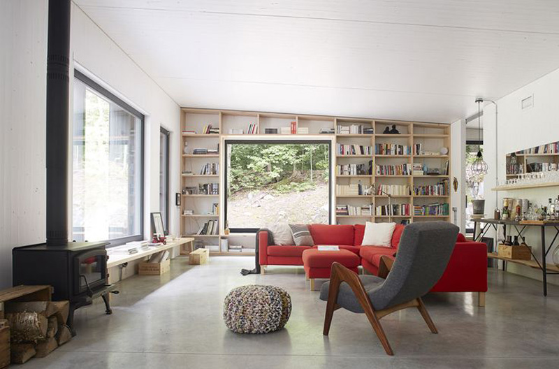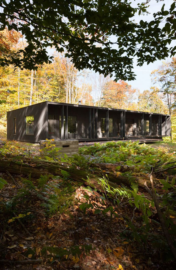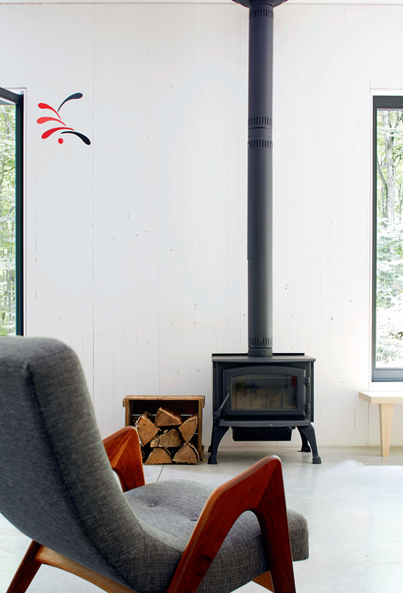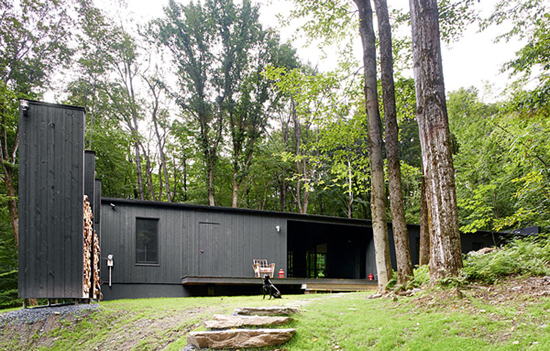 I spotted this year-round cottage on Décormag yesterday and had to share because this is my dream summer getaway….except it needs to be lake-fronted. And maybe in a warmer climate, like Mexico. 😉 This stunner is located in the Eastern Townships of Québec and was designed by Atelier Barda. I am dying over the black stained wood exterior, and the simplicity of the interior is all you need in a second residence. And a must in a dwelling with surroundings this beautiful – those large windows framing scenes of the forest as art. (Photos: Yves Lefebvre)