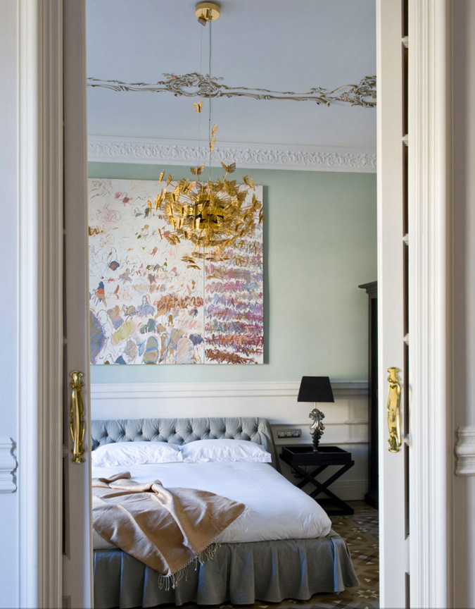 So in love with gold and brass right now. Enough with the cold metals and monochrome predictabilities! Who wouldn't love to sleep in this sumptuous room?!?