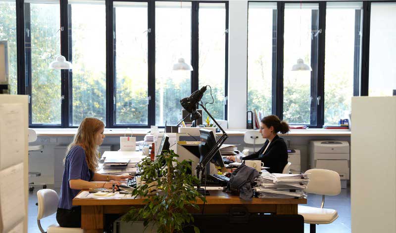 It’s the weekend and instead of spending this glorious summer day at the beach (at least here) some of us have to work. If my office was designed by Ilse Crawford I would probably never want to go home. You’d find me sleeping under my desk every night especially in this first workplace, a British advertising agency in a former 1960s British Rail maintenance depot. The second space is Studioilse‘s own offices. Both with lovely light pouring in through walls of windows and a relaxed, domestic scale.