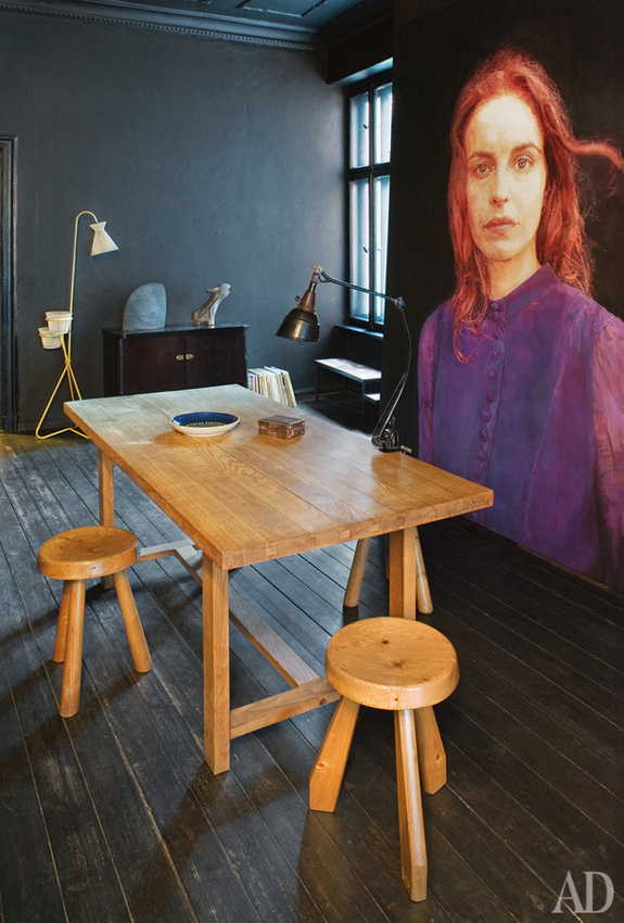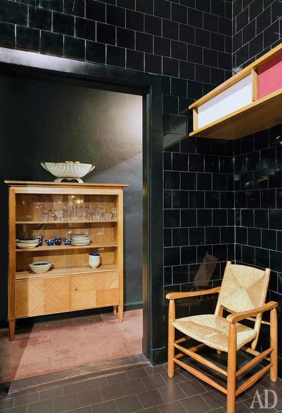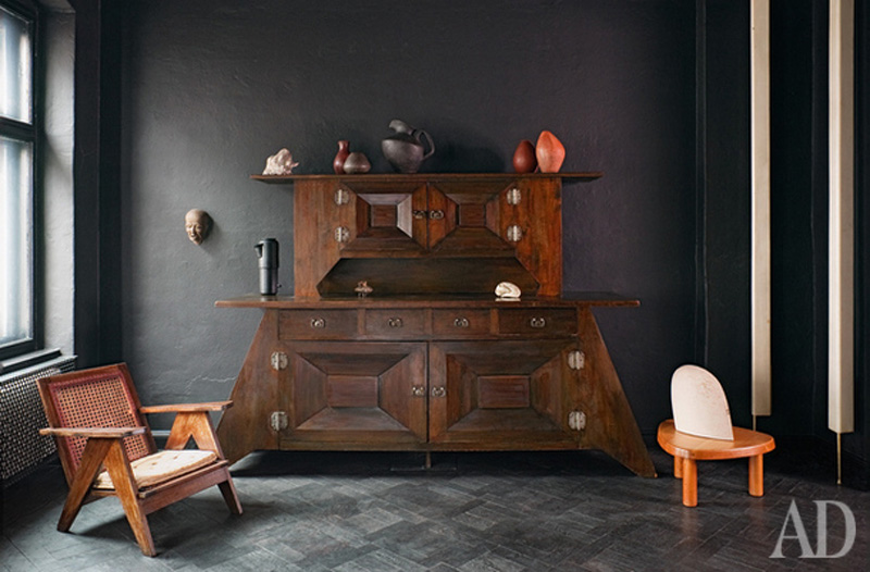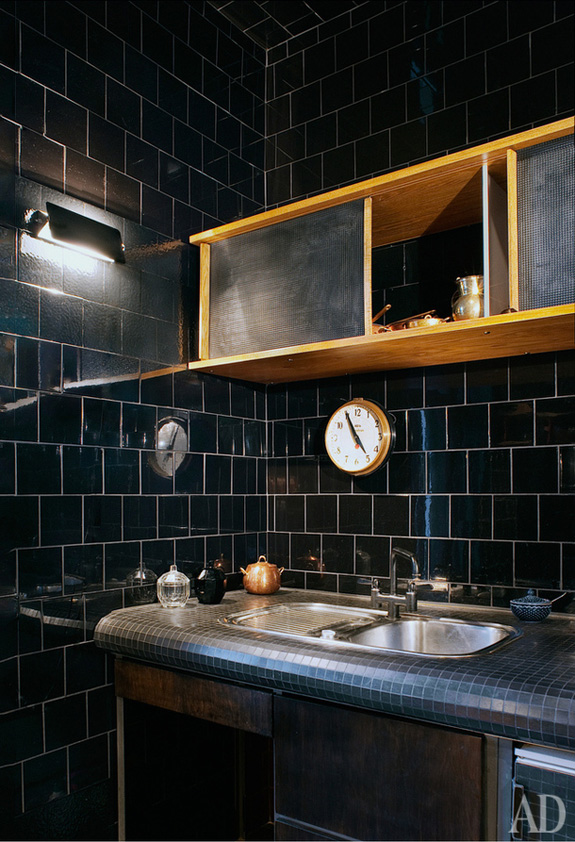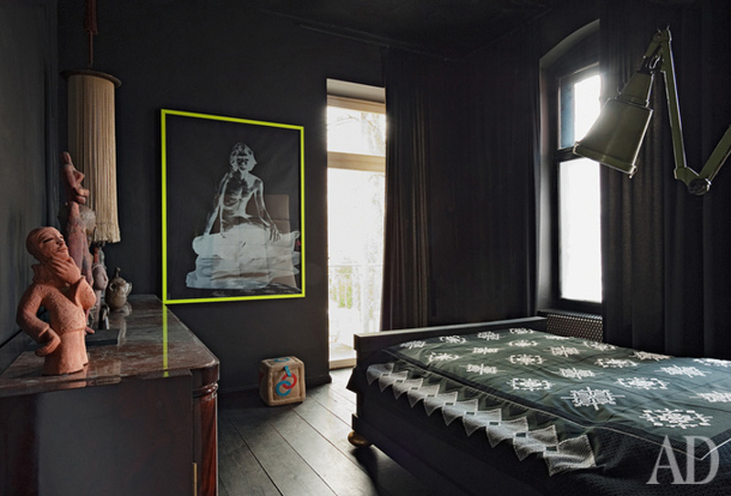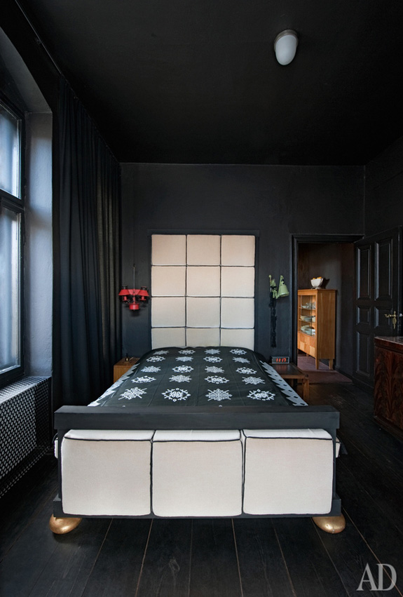 I find dark spaces so intriguing, especially while white Scandinavian spaces seem to have been all the rage as of late. Nothing against white, I am just a bit tired of it. I have not regretted painting my living room dark grey (Farrow & Ball’s Down Pipe) and I have plans to darken other spaces around my house. As soon as I get some breakfast in me today, I will be working on painting my bedroom a dark-ish colour – Farrow & Ball’s Mouse’s Back. The 100 m2 apartment of designer Sylvester Kotsolek in Berlin from Architectural Digest Russia caught me eye – because the entire space is black! This is so moody and gorgeous. Kudos to Sylvester for having the guts to go black.