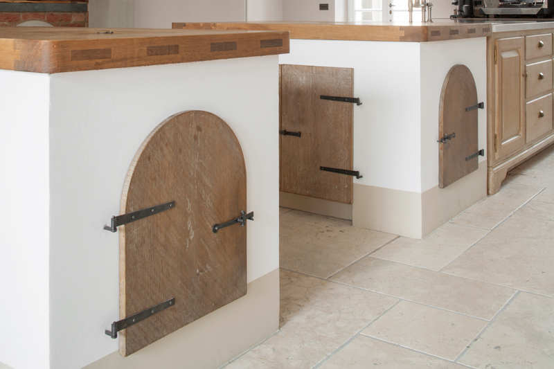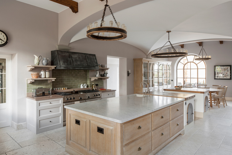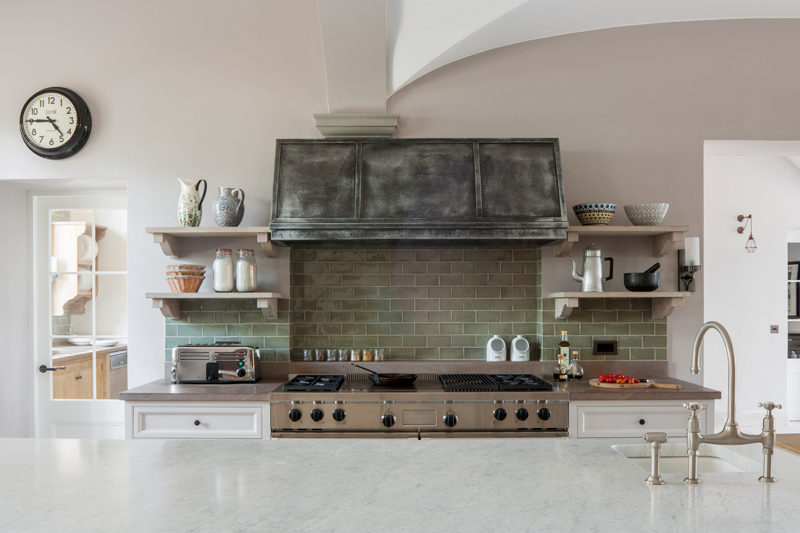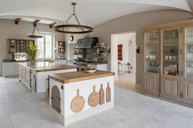 It has been a while since I featured the brilliant kitchens of UK-based design firm Artichoke. They sent over photos of a recently completed Tuscan-inspired kitchen that is so beautifully designed and SO spacious. I am in love. A variety of furniture styles were deployed in this bespoke kitchen to give the impression that the room had evolved over time. The central islands were designed in plaster, with hand planed and finished arched chestnut doors at the ends, typical of the local vernacular. The dresser uses bespoke espagnolette ironmongery with rounded inside moulds on the lay-on door frame to introduce a French element, while the furniture flanking the Wolf range oven is more Georgian in feel.