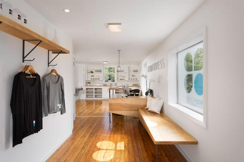 Or in this case should it be working out on a Saturday? Either way there would be no dragging yourself in on a Saturday if your workplace/workout space was as stylish as this ballet bar based workout studio by reach architects in Austin Texas. Clean, modern, welcoming.