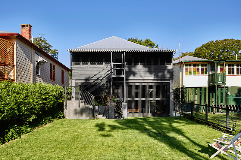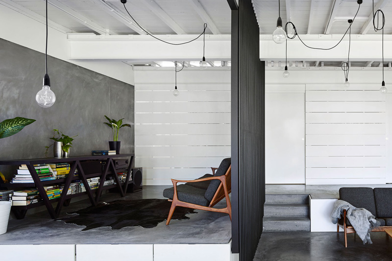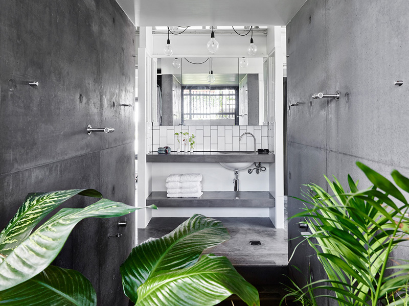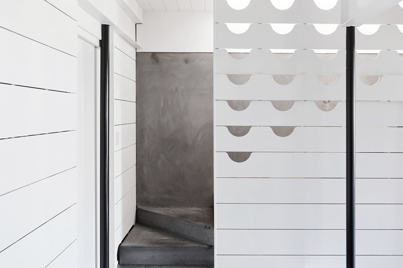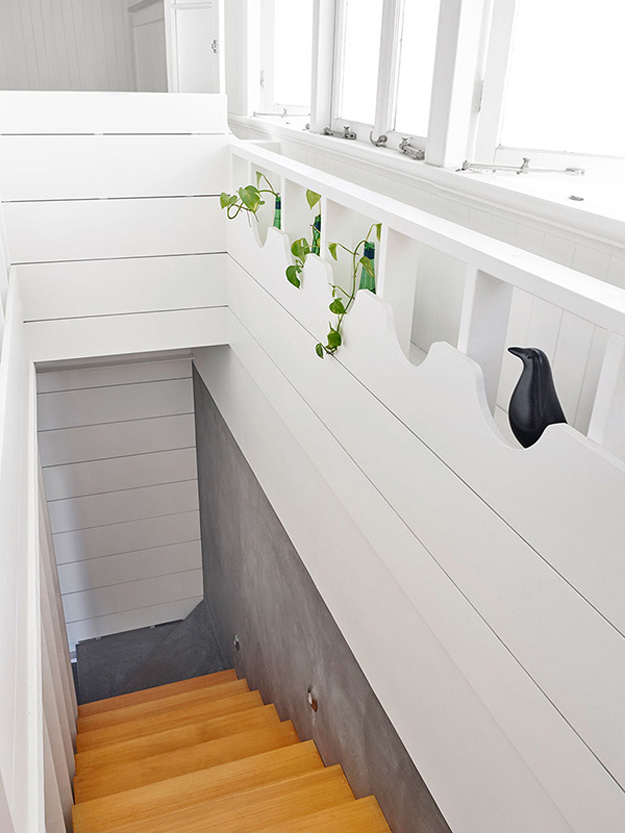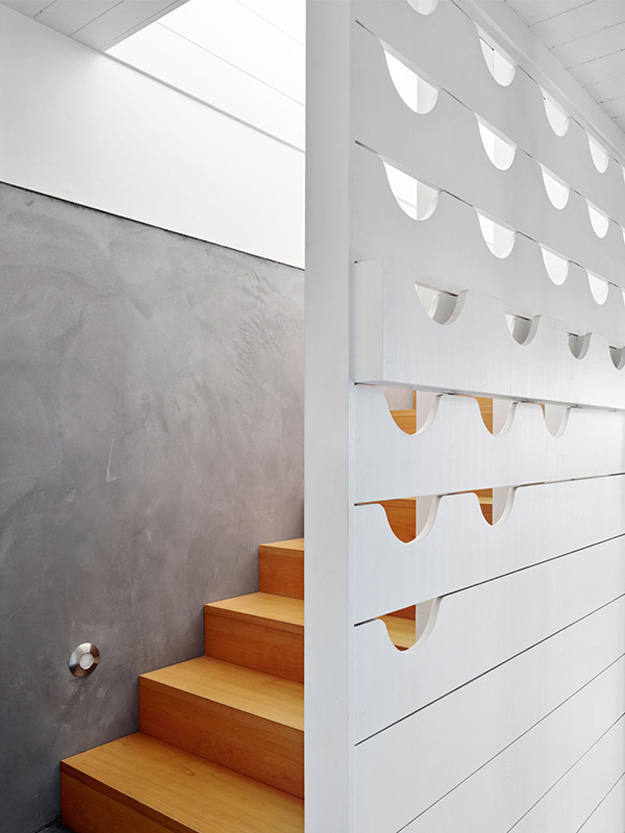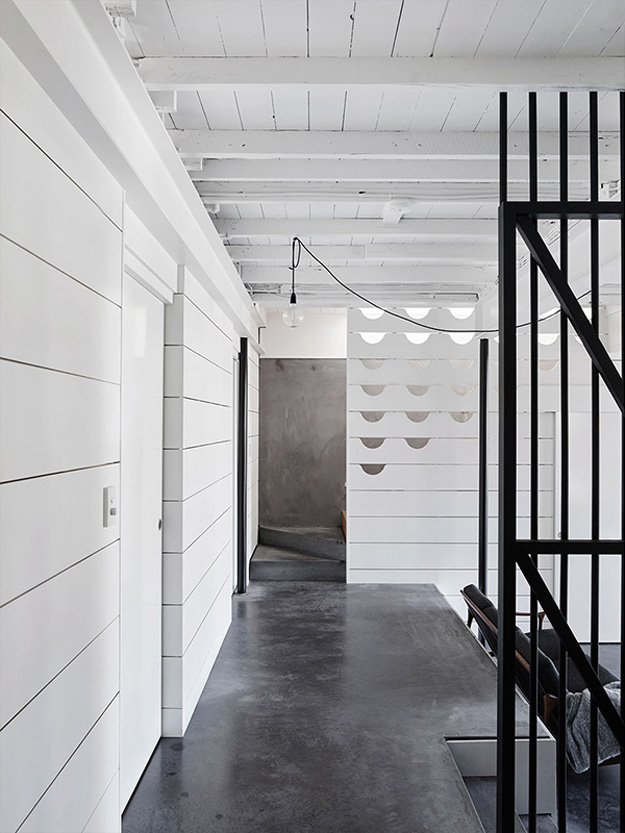 White, back and grey – there is nothing better. Except when the grey is concrete. Like in this Brisbane home designed by Australian architects Paul Owen and Sam Charles-Ginn. Love all the painted wood planks in the walls and ceiling and the cut outs in the stairs. Now I will be dreaming of concrete floors for the rest of the day (especially after finding claw marks on my newly refinished hardwood floors – anyone want a cat?!?!).