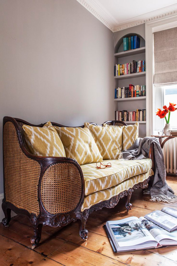 I am exhausted. All I want to do is curl up with many cups of tea and some movies and magazines and chill out. If it were on this settee I would never leave. Via Kate Monckton Interior Design.