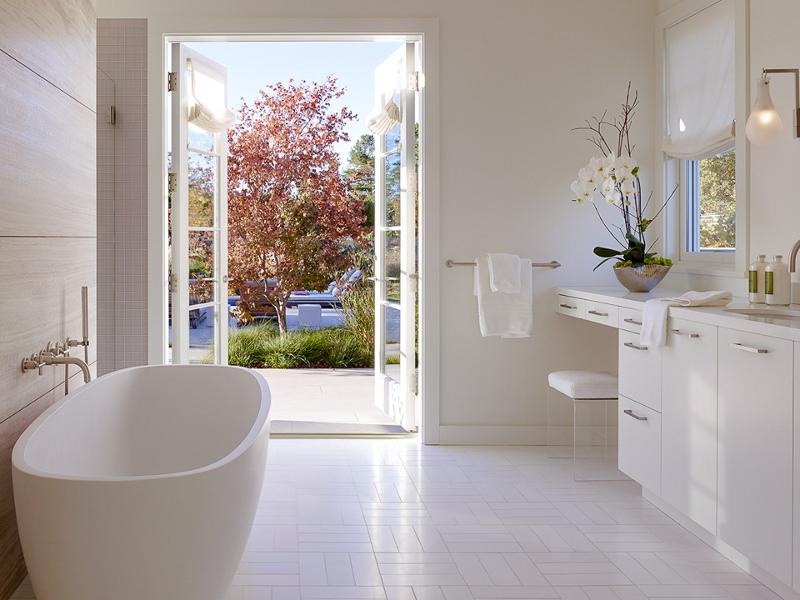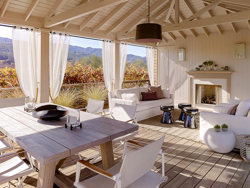 Known for her dramatic and experimental interiors Kara Mann has created what at first appears to be the counterbalance of her perceived “Goth” style for this Napa Valley home. Relaxed elegance, laid back flair with seamless interior/exterior living. Light and bright and liveable. You can almost feel the breezes fluttering the drapes and the sound of friends and family chilling by the pool.