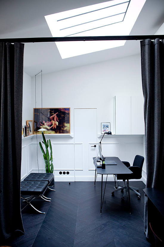 A new year stretches ahead and many of us face the “joy” of dragging ourselves into work on a weekend. Have no fear! There is a solution. A stylish design solution. Just make sure your workplace looks as cool as this office in an old studio in the Xth arrondissement in Paris. Agitateurs Graphiques by Agence Marie Deroudilhe.