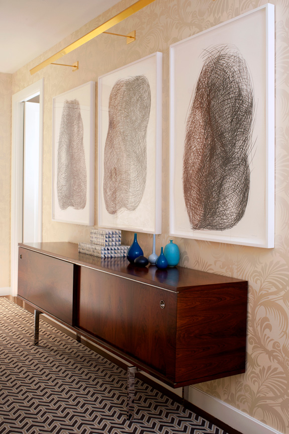 Katie Lydon‘s interiors bridge the gap between classic and modern, creating spaces that blend both styles seamlessly and effortlessly. Just enough wow factor without overloading the senses. And she has fabulous taste in art. (On that note, I have been trying – not very hard mind you – to find a photograph to have printed on canvas to hang over my sofa. I found this one but I’m not convinced. If anyone has a favourite source for graphic photography do share!)