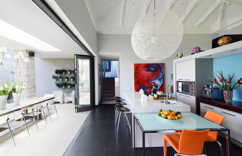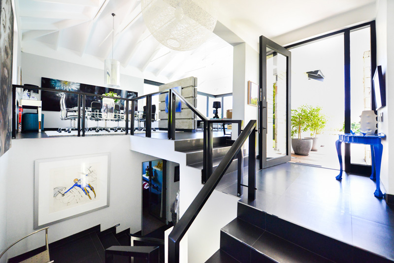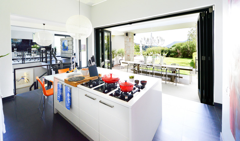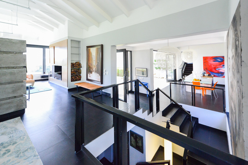 For those who are into black and white with pops of colour, this house in Hout Bay, Cape Town, South Africa is for you. House Amanda by Inhouse. The brief was to design a house that would celebrate local contemporary art and allow the owners to entertain guests frequently. The house had to accommodate a mature family and be equally livable by day and night. It was important for the house to embrace the area in which it was located, so a sensitive architectural design was one of the criteria. The house needed to embrace the exterior with its beautiful views of the Hout Bay valley and surrounding mountains.