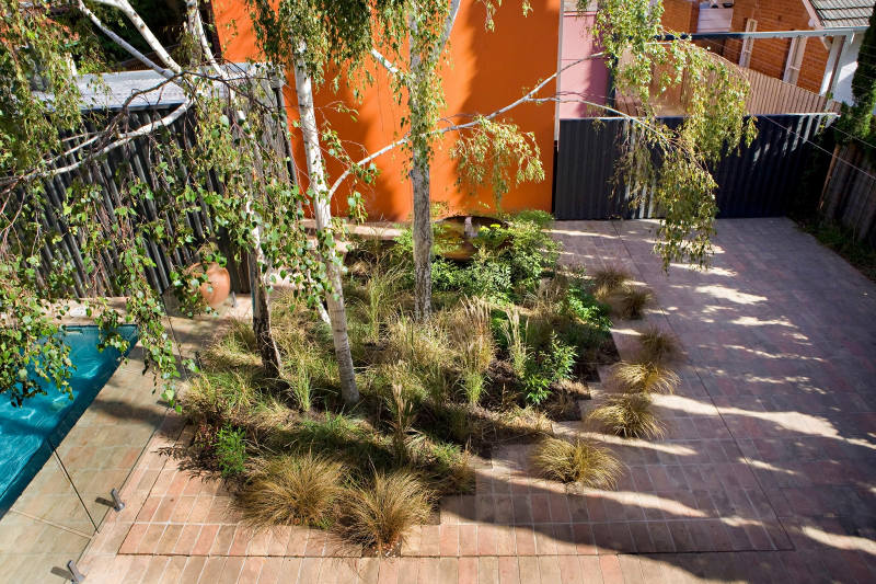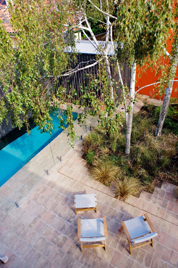 Inner city living often means that a garden has to be multifunctional. Parking space, entertaining area, a place to relax, a little greenery to counteract the harsh urban landscape. A multifunctional oasis. If you can through in a small pool and a statement orange wall well things just got turned up a notch. Loving this St Kilda, Melbourne courtyard by Eckersley Garden Architecture.