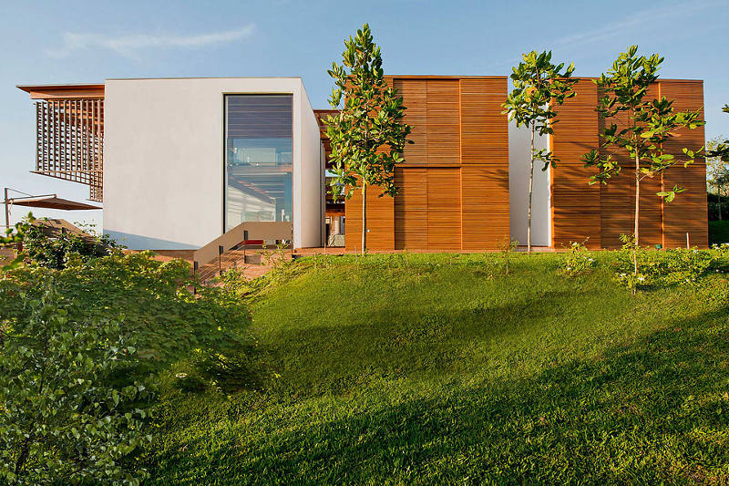 Sitting proudly on the rise with its face turned to the sun is the striking Quinta da Baroneza House by São Paulo-based Candida Tabet Arquitetura. Massive spans and a play of horizontal against vertical elements characterise the design. Sun kissed, open and generous. A true Brazilian beauty.