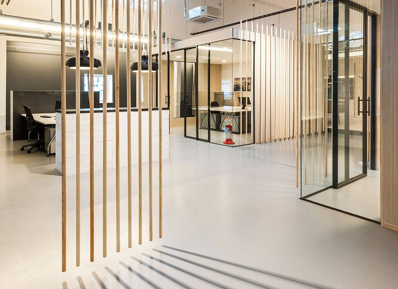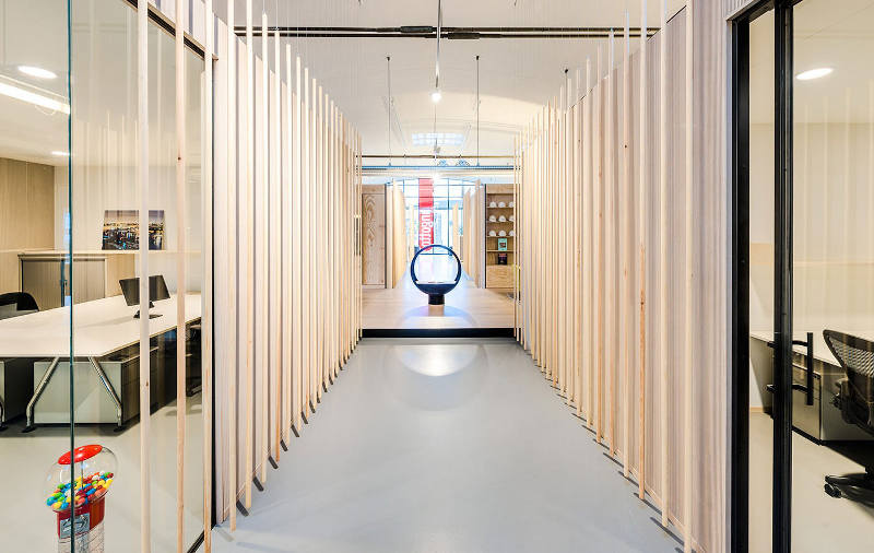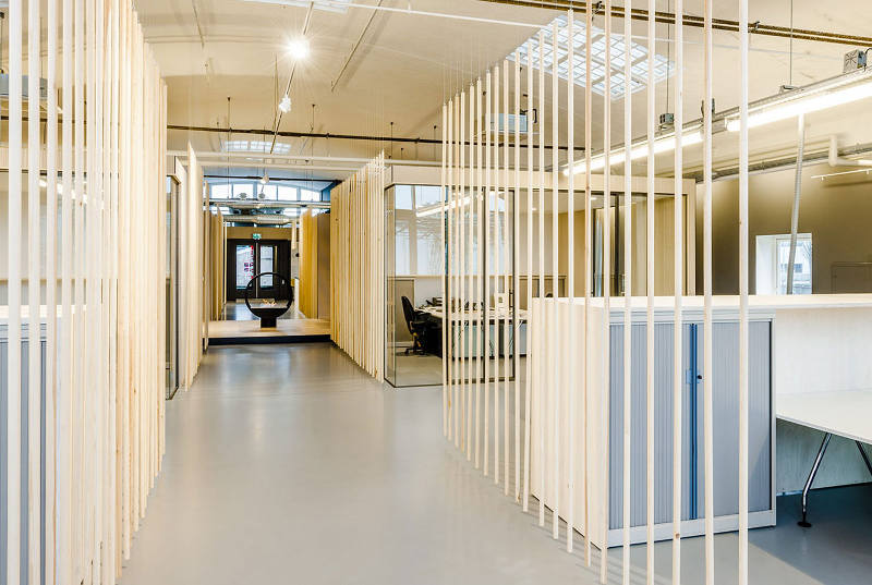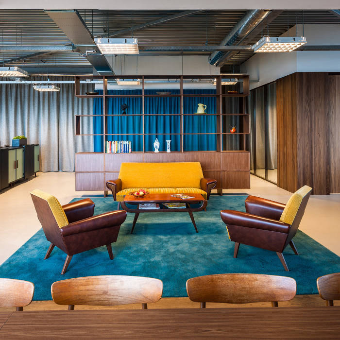 It’s like I say time and again. If you have to drag your sorry self into work on a Saturday then it certainly helps if it’s somewhere stylish. I have two offices today, both by Amsterdam-based interior design and branding agency Tank. Lingotto uses suspended timber dowels as visual dividers while Doom & Dickson (fabulous name) has a definite retro vibe.