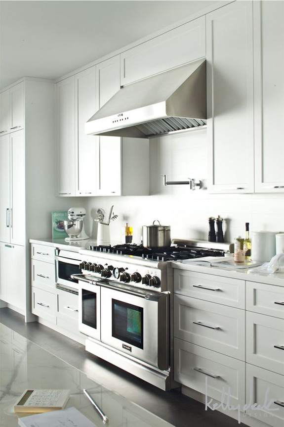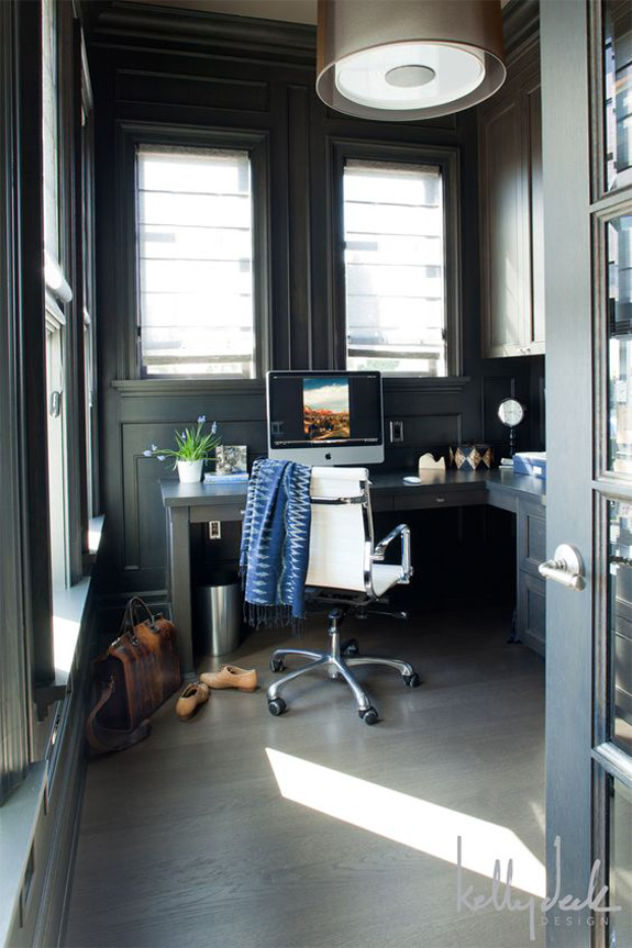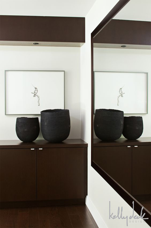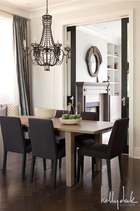 It has been quite some time since we featured the designs of Canadian design talent Kelly Deck (the last post). She continues to dazzle with classy, sometimes modern spaces with drama added in small doses with dark colours, artwork or funky lighting. The photo above (and below) blew me away. So simple yet high impact. Gorgeous.