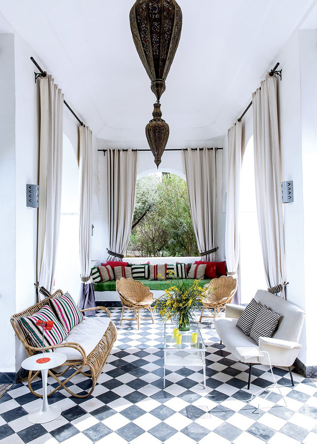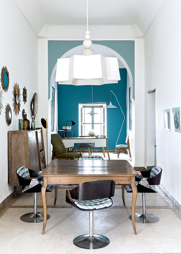 I was poking around Marie Claire Maison yesterday and came across a few homes that really captured my attention so I thought I would share a couple of them. This Marrakech home has gorgeous features that are typical of Moroccan architecture but the owners have spiced things up with some mid-century modern furnishings. A quirky combination, and I love it.