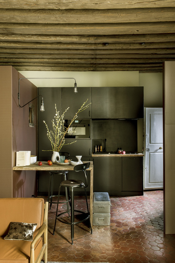 Living in a small space doesn’t mean you have to compromise on style. This little Paris number designed by Elodie Sire of D.mesure is all you really need. I mean, it is Paris after all. You will never be home anyway. (Check out some previous features of her work here, here and here)