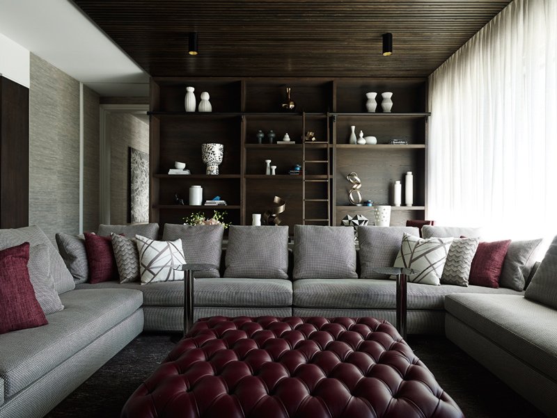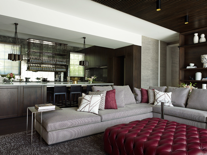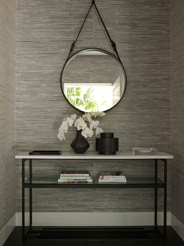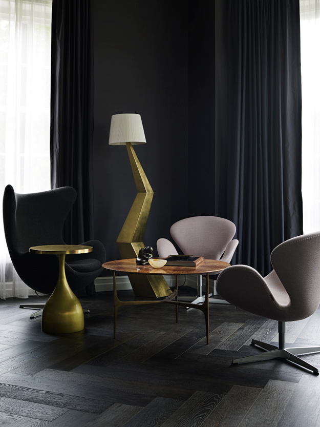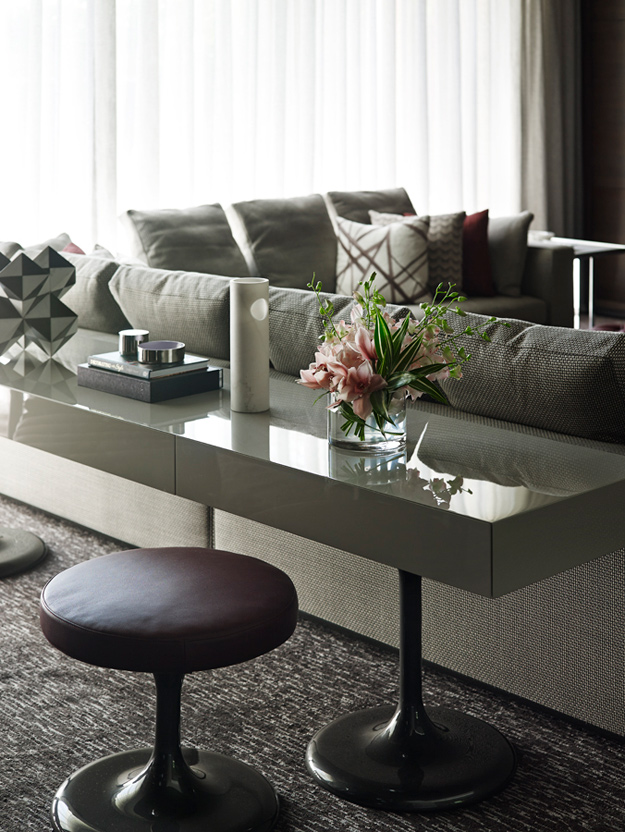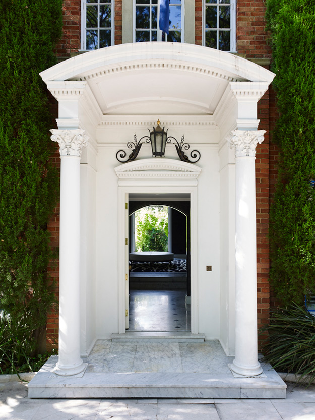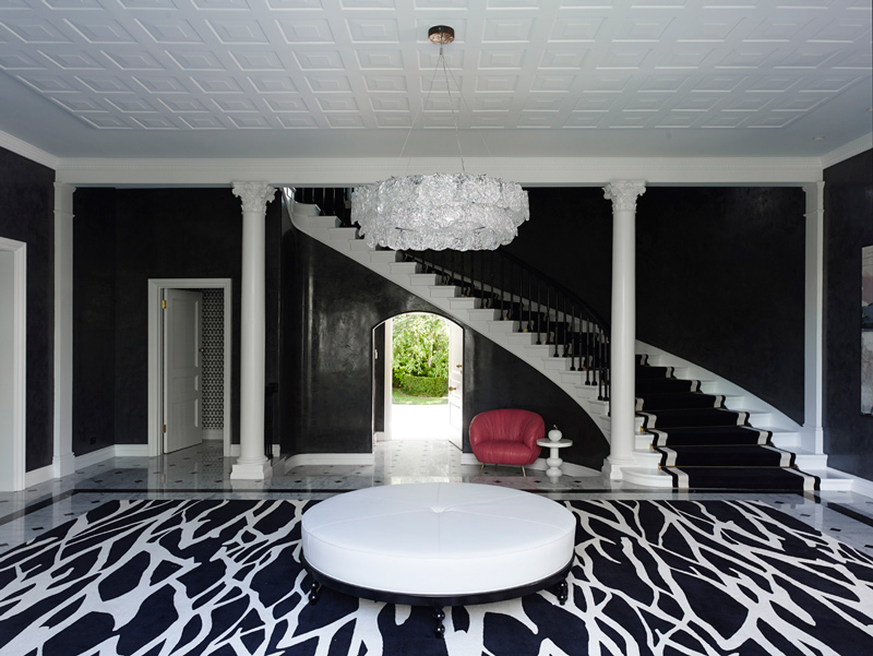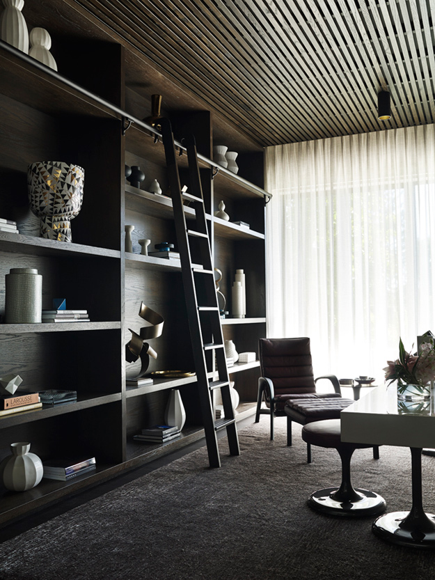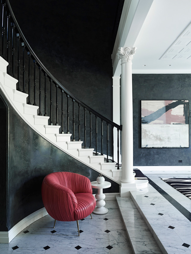 The King of Glamour strikes again. Yet another impeccably curated space that is sophisticated to the hilt in this seven bedroom Melbourne home. Sydney based interior designer Greg Natale always nails it and I will forever be a huge fan of his spaces. The design is a study in balance and contrast of textures, hues and shapes. The dramatic entrance, where the angles of the ceiling, windows and doors are juxtaposed by the circular ottoman, chandelier and organic-patterned rug, offers a taste of the dynamics within.