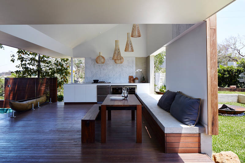 If truth be told most Australians would live, sleep and eat outdoors. If we have four walls around us at home we scheme and plan for sliding doors and windows that lead onto decks and balconies and patios. We spend thousands on beautiful kitchens then prefer to cook our evening meals on barbecues. We are even known to pile on the woolies and stand out there cooking in the middle of winter. Which is why we all dream of having the perfect outdoor room like this clever extension in Taringa, Brisbane by Nielsen Workshop. The great outdoors have never looked so stylish.