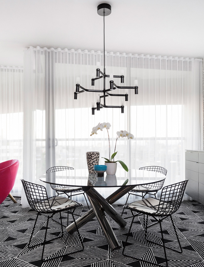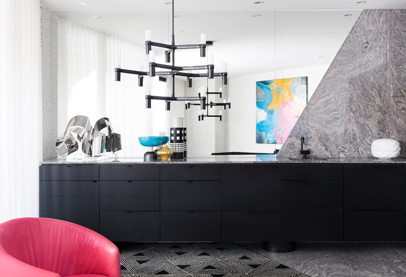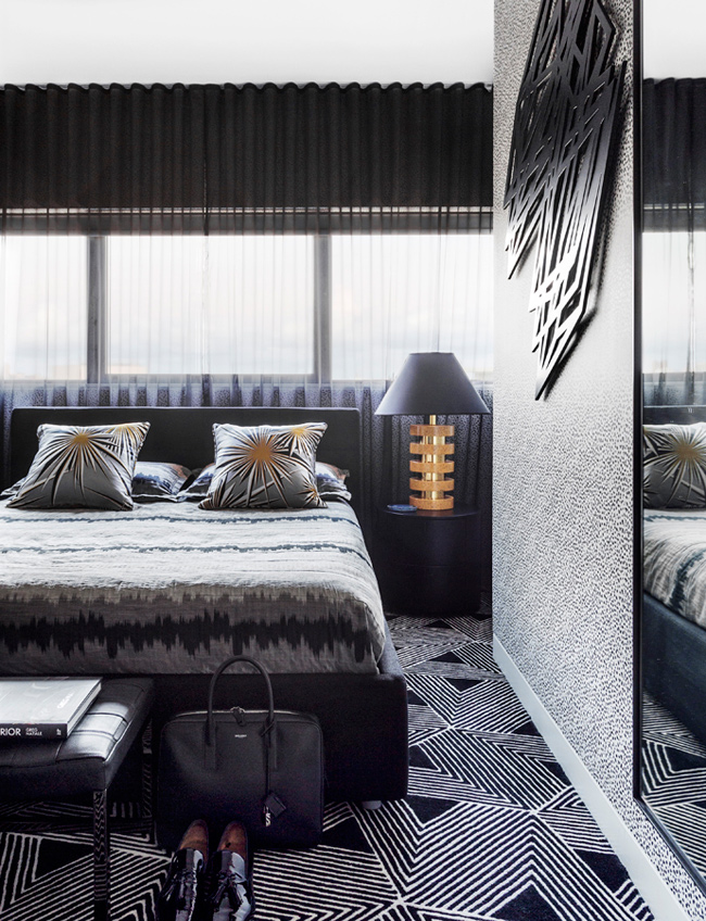 When you’re the king of glamour and pattern and graphic design, of course your apartment would be all of the above. Welcome to the Darlinghurst apartment of Greg Natale. Monochromatic in black and white with accents of pink, this space is hot, as all his designs are.