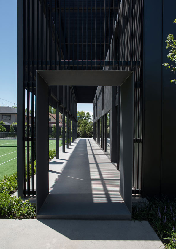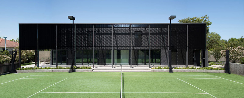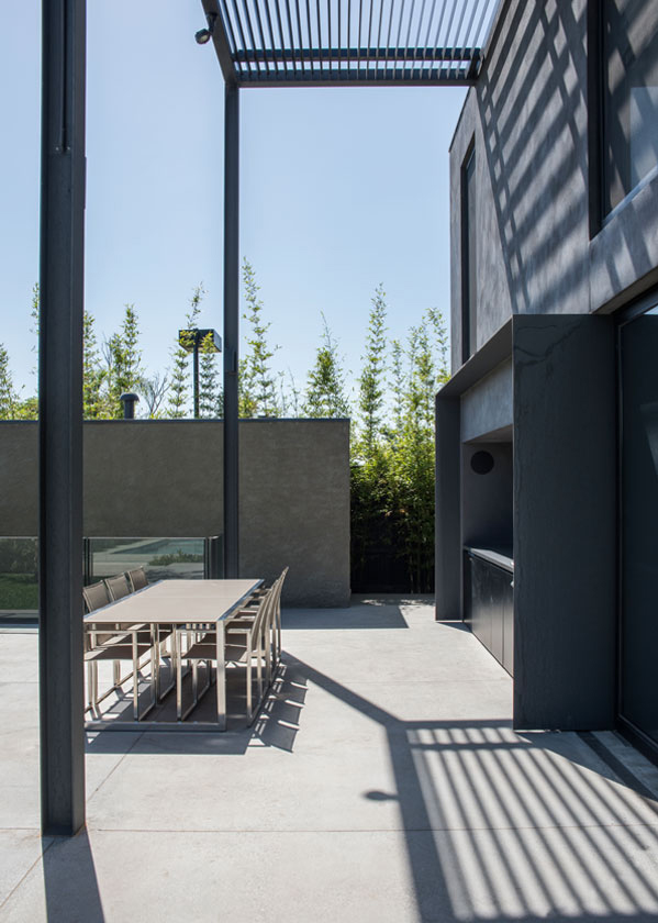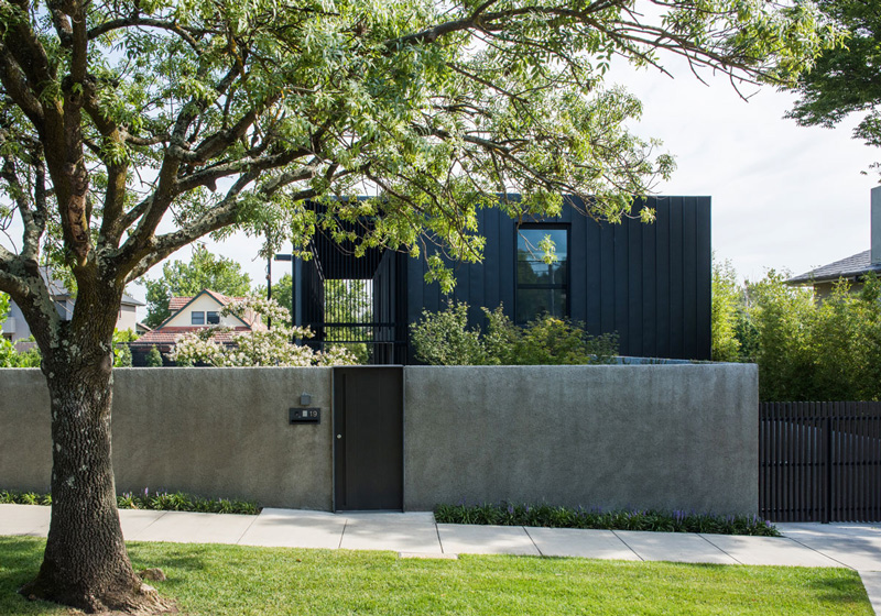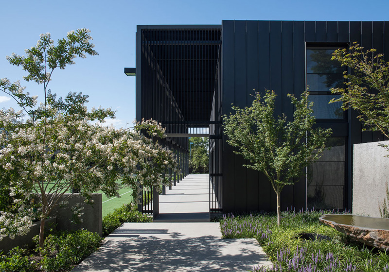 When modern architecture and black comes together and produces something that dreams are made of. The Frame House Melbourne by Carr Design Group. Situated on a large block in Melbourne, the family home exposes little to the street. Behind the textured stucco wall a striking house is revealed within a lush secret garden. The rhythm of the colonnade and overall proportions evoke the elegance of Georgian architecture. Conversely the house is bold and contemporary with its robust steel frame supporting a finely detailed metal screen and zinc cladding.