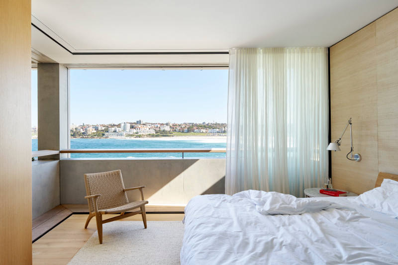 The real estate adage goes “location, location, location” and I don’t think you can get a more spectacular location than Ben Buckler Point in Sydney, overlooking iconic Bondi Beach. Here houses spill down to the high water line bravely facing the unremitting waves. How do you design a house that is up to the challenge of sea and scene? How to embrace the view and the site restraints? Ask architects Tobias Partners or better still drink in the restrained beauty of their design, Deepwater House.