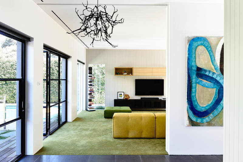The facade of this Hawthorn, Melbourne house may be traditional but behind the glossy black door is a sophisticated, contemporary home. The renovation by Austin Design Associates is rich with bespoke details and beautiful finishes. (The joinery is a standout of the property.) A palette of black and white is warmed with golden wood and metal in the open plan kitchen/dining/living areas while a playful dose of greens and yellows is a surprise in the family room. A beautiful home. A perfectly modern marriage of the old and the new.