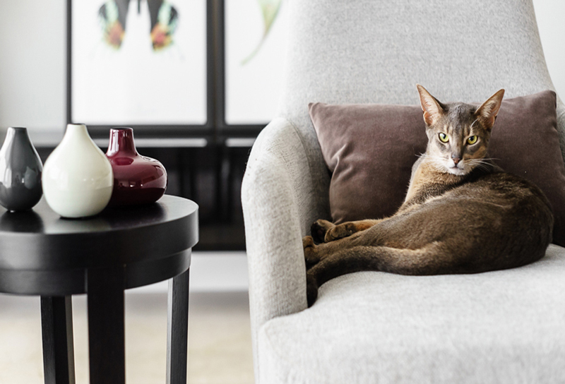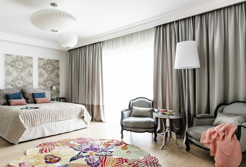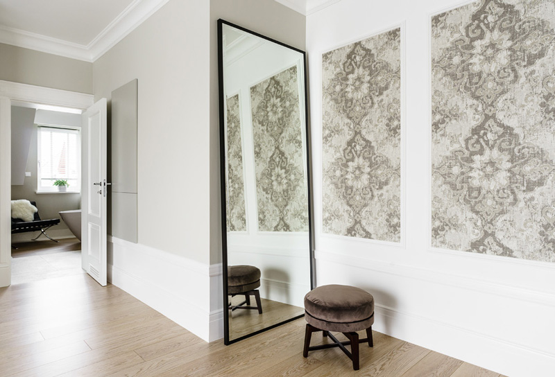Polish interior designer Lucyna Kołodziejska has impressed me yet again with this latest project of hers that she sent me juicy photos of. Hired on by the homeowners initially to redesign their bathroom, she ended up redecorating the entire house. The result is a truly elegant blend of classic and modern elements that flows from one room to another with a very subtle colour palette of beige and earth tones (Lucyna was inspired by coastal homes) that would ordinary have me wanting more but here it just makes all of the beautiful details stand out. And the cat has won me over too. 🙂
