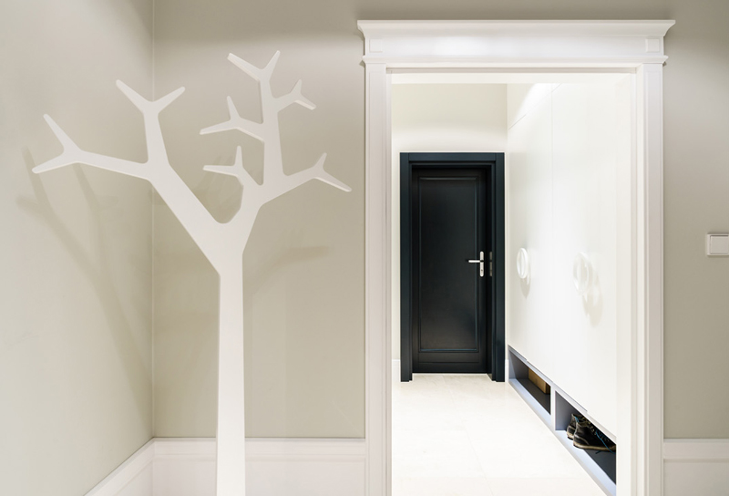 Polish interior designer Lucyna Kołodziejska has impressed me yet again with this latest project of hers that she sent me juicy photos of. Hired on by the homeowners initially to redesign their bathroom, she ended up redecorating the entire house. The result is a truly elegant blend of classic and modern elements that flows from one room to another with a very subtle colour palette of beige and earth tones (Lucyna was inspired by coastal homes) that would ordinary have me wanting more but here it just makes all of the beautiful details stand out. And the cat has won me over too. 🙂