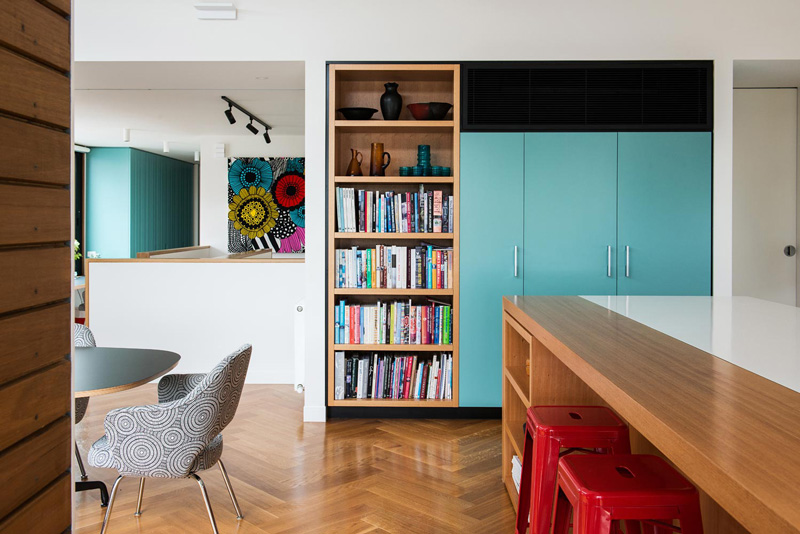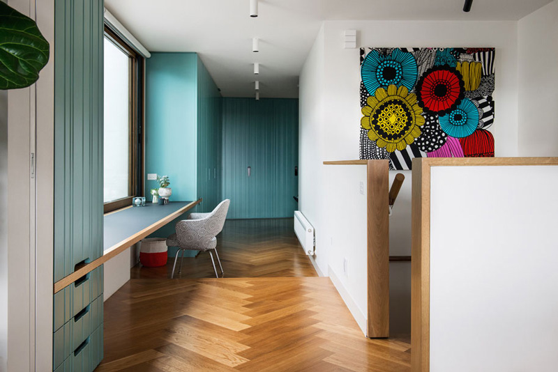 This post is for the folks who have commented lately that we’ve been too many posting been-there-done-that, white houses lately. This house has accents of turquoise/mint green in almost every room and I absolutely love it. Fresh and fun and paired with some red and black it is HOT. Thank you Nest Architects for showing us how to do colour.