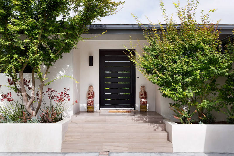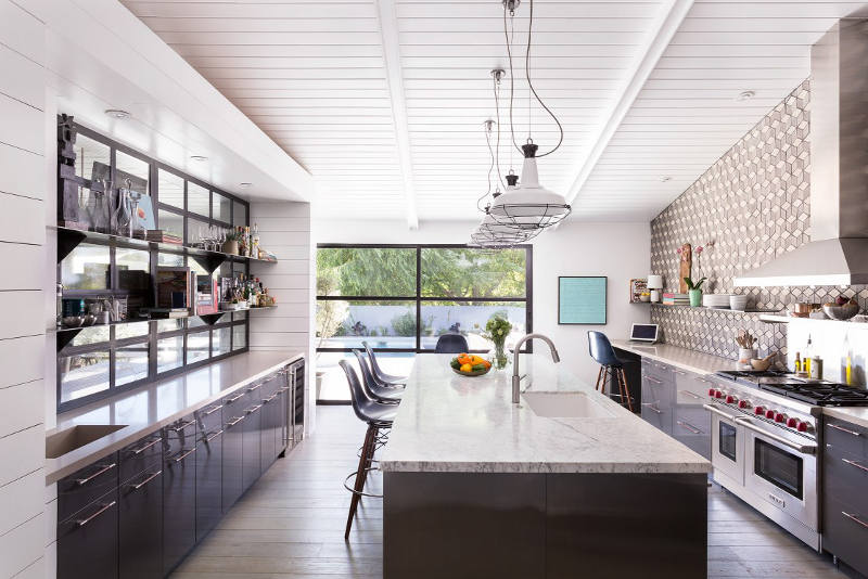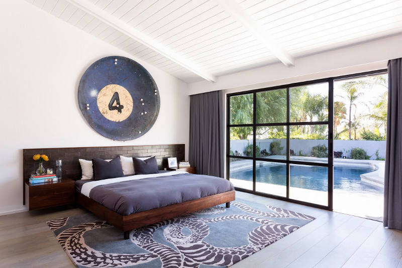 I love this stylish contemporary family home with a mid century riff and loads of personality. Light and bright with great use of three quarter partition walls to divide spaces, the rooms flow easily into each other and the outdoors. The master suite is fabulous with a dressing room I’d kill for and “pool” in and outside the room. Ranch style redo done right by Los Angeles and Santa Barbara based Brown Design Group.