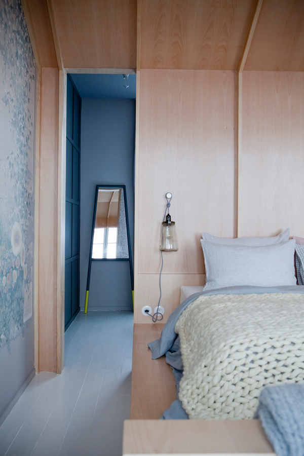 Located at 5 rue de Charonne in Paris is fashion brand Marie-Sixtine‘s flagship boutique, creative workshop, showroom, and above it all, their highly-exclusive chic hideaway called Chez Marie-Sixtine. One of the most beautiful apartments I have ever seen in pastels and greys, so soothing and inviting. Except I don’t think I could ever leave that bedroom. EVER. Interior design: Sandrine Place Architect: Baptiste Legué Photos: Julie Ansiau