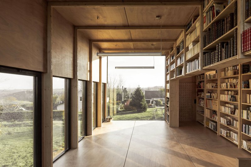 My third floor ‘loft’ room, since we moved in, was a feral cat rescue sanctuary/junk room and continues to be so as other projects around the house take priority. When I came across this library/garage space I nearly had a stoke. What an amazing space to hang out, enjoy peace and quiet and read a book. I would even consider taking up yoga if I could do it with all that room to move and those views! By Ziegler Antonin Architecte.