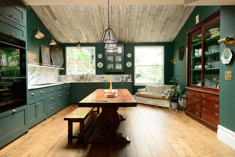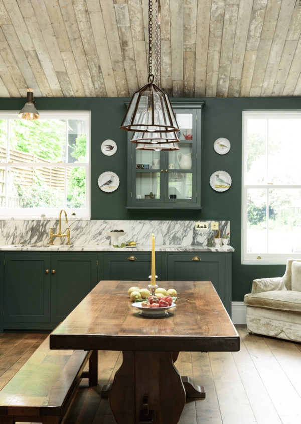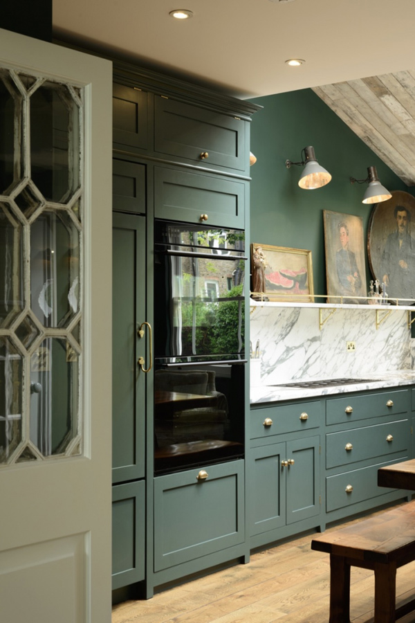 I found this deVOL kitchen the other day on JJ Locations and I was completely shocked to discover how much I really REALLY love it. It could be because living in a traditional home for a couple of years now is rubbing off on me, or the fact that my kitchen can barely fit 2 people standing in it so anything roomy makes me envious. This kitchen is situated in a 1846 Victorian in London, and while I would consider changing a couple of things (that sofa in the corner isn’t working – I love the idea of a settee just not that one, the table is missing a bench and I would paint out the inside of that hutch black and fill it with white dishes), this is the best take on a traditional kitchen I think I have ever seen. I don’t even really like green and I love this. Crazy!