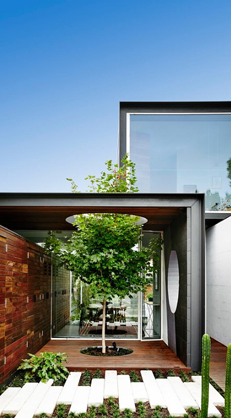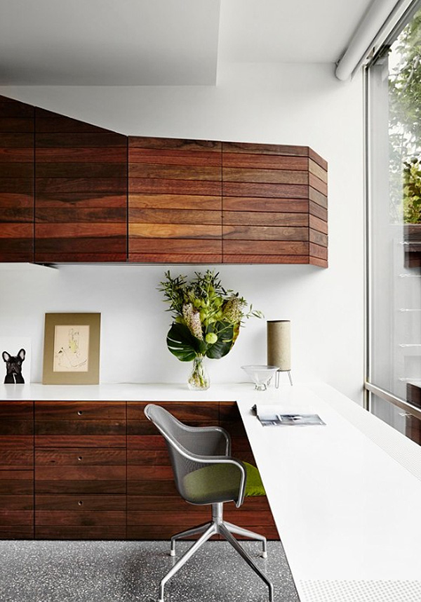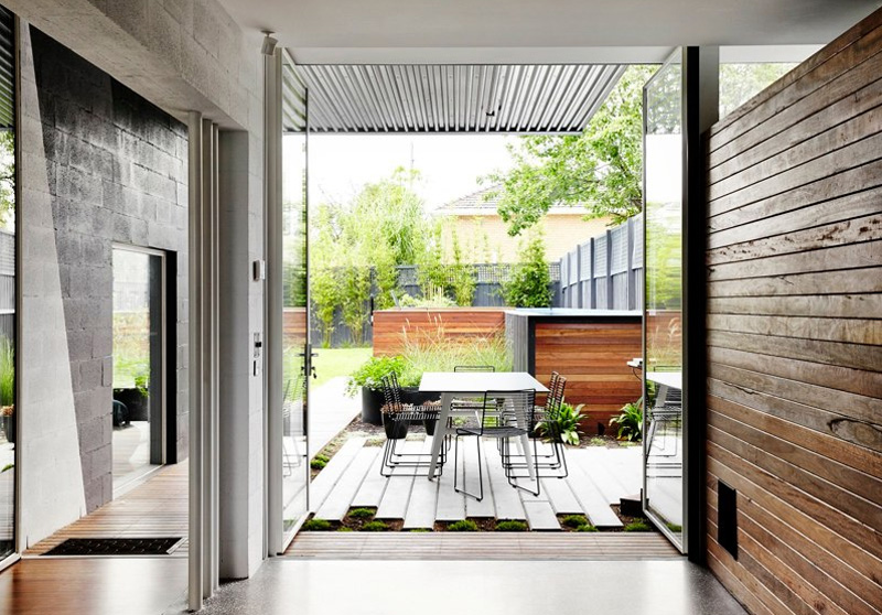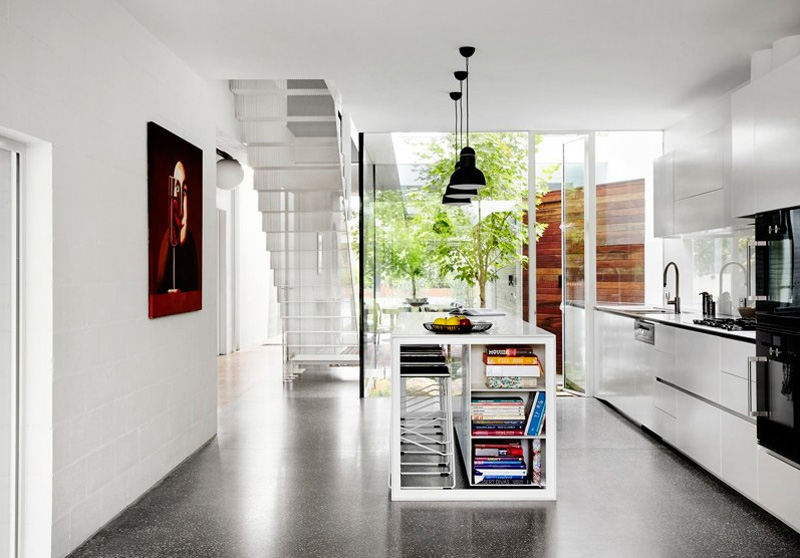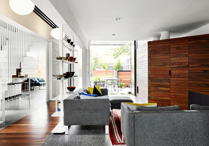 WOW! Do I ever love THAT house! :)Which house? THAT House by Austin Maynard Architects. The site is neighboured by huge houses. We were asked to provide the family with ‘just the right amount of space’. By creating large openings and generous connections to the garden we aimed to make this modest-sized home feel abundant and broad. The result is a home that is almost half the size of its neighbours without compromising liveability. (Lets be clear, THAT House is not a small home). The owners of THAT House are keen to able to open up to the community rather than permanently hiding or fortifying themselves. We have installed upwards blinds to give the owners control over their level of privacy. The ground floor of THAT House is ostensibly open, however the arrangement of spaces allows the owners to be together, or secluded, or any level of engagement in between.
