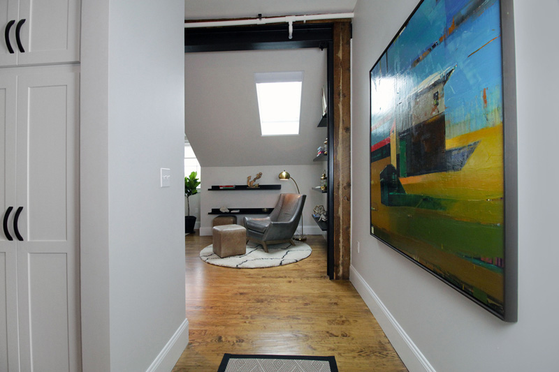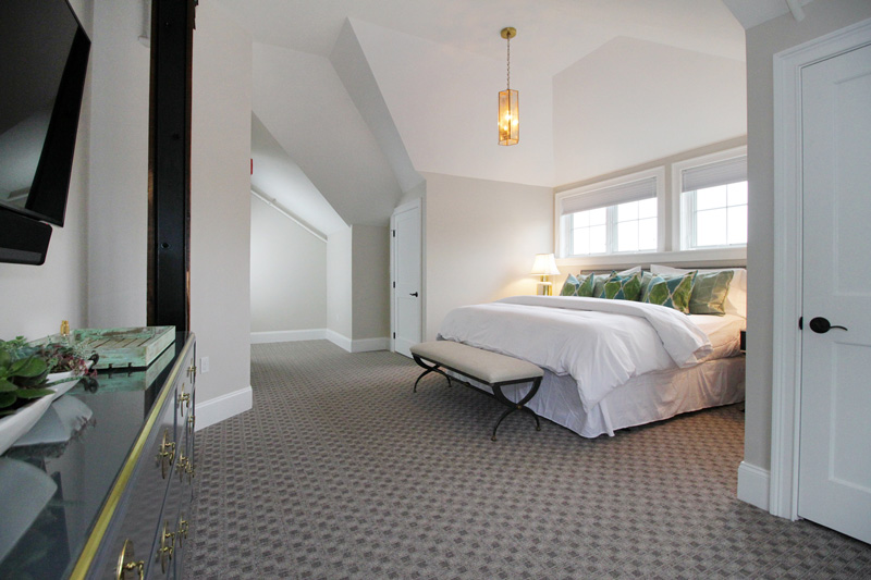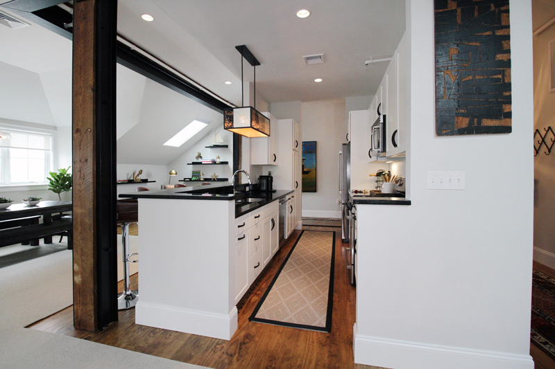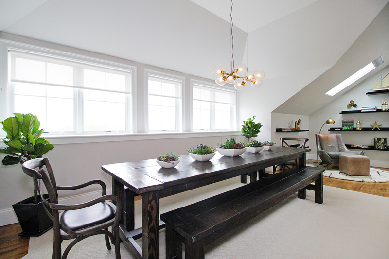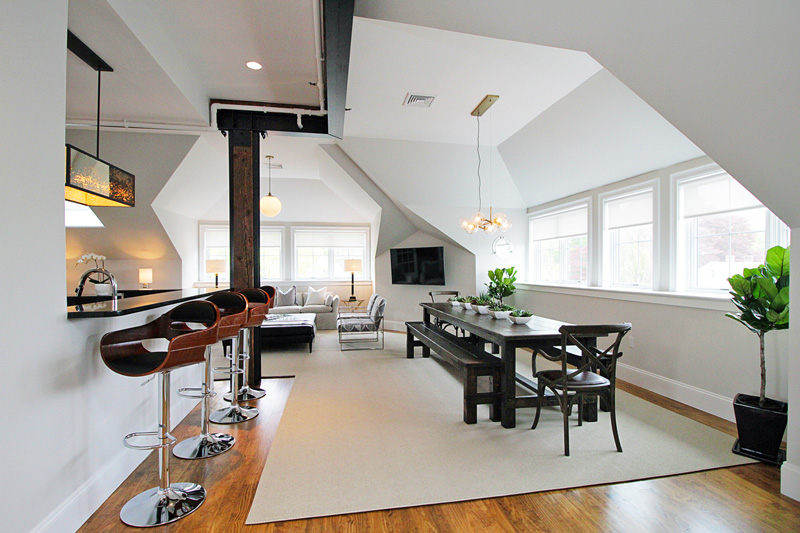 Becky of Libby Kirwin Real Estate sent over some photos of this fantastic penthouse condo in Newport, Rhode Island. Libby worked with an investor to transform a dilapidated neighbourhood elementary school into a 13-unit condominium building, which sold out pretty quickly and I can see why! With exposed brick and beams and lots of ceiling angles for added architectural interest, this is a dream! And those hardwood floors are gorgeous but I can’t believe the stagers covered it up with so many large rugs. Other than that I am in love.