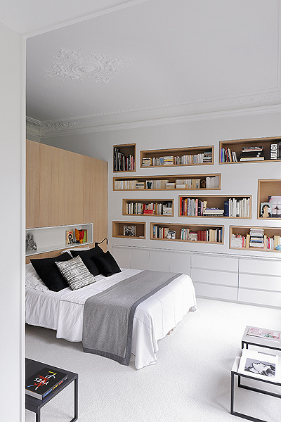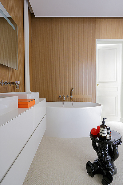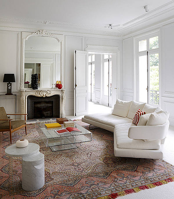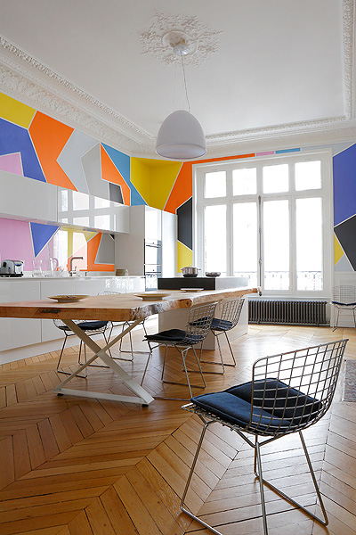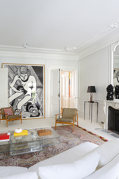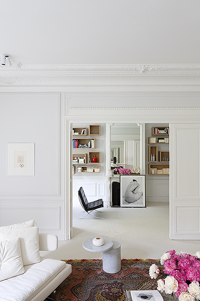 Fabulous French Friday. Is there such a thing? Well there is today because I had to share this delicious Haussmannian apartment in Paris by Studio Razavi Architecture. The bones are great, those white walls and floors the perfect foil for the covetable furniture and art collection but there’s a surprise in the kitchen… after the jump.