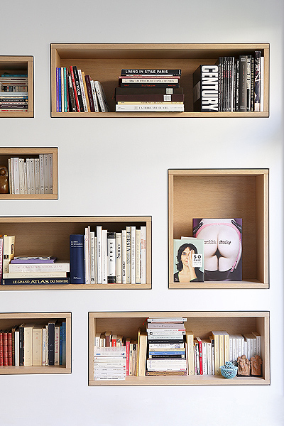 I LOVE this space, especially the little book niches. A great mix of creativity and reverence for the historical bones of the building. The kitchen is a nice homage to Sol LeWitt.
