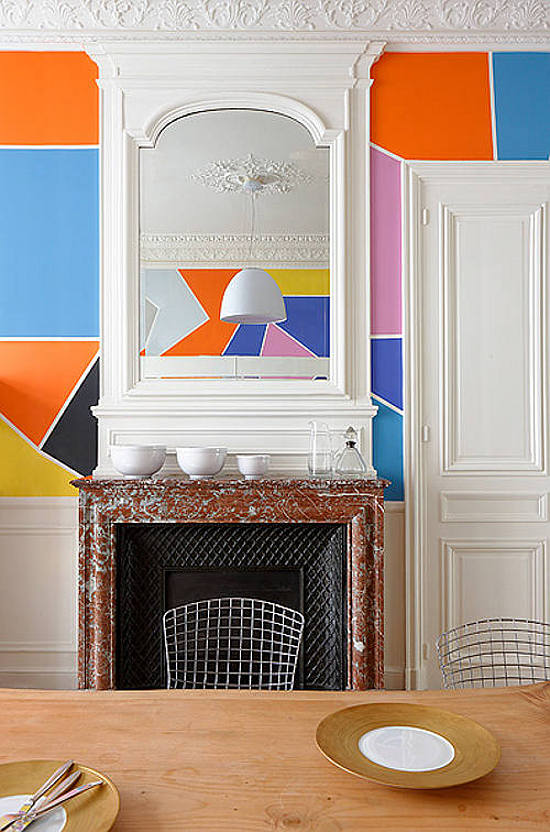 I love the living room, but I'm not a huge fan of the paint job in the kitchen. It's the sort of thing that's nice to visit, say at a café or at the home of an eccentric friend, but I wouldn't want to live with it. The red marble fireplace, however, is gorgeous. It's the same marble as my kitchen counters. Love it.