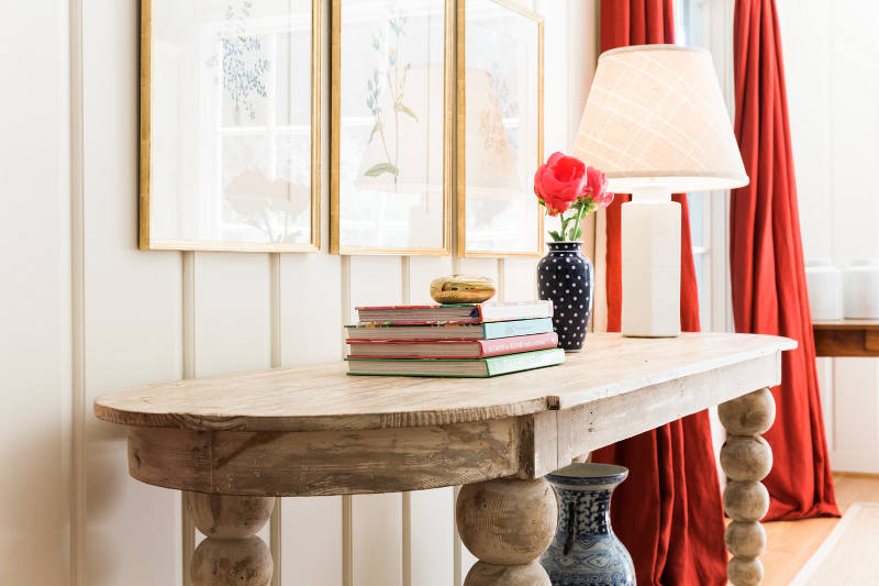 Thank you for posting about my home! I have changed out the dining rug as it was too small. I also switched out the red linen draperies for some light indian cotton ones for the summer. Decorating on a budget always posts some challenges!!